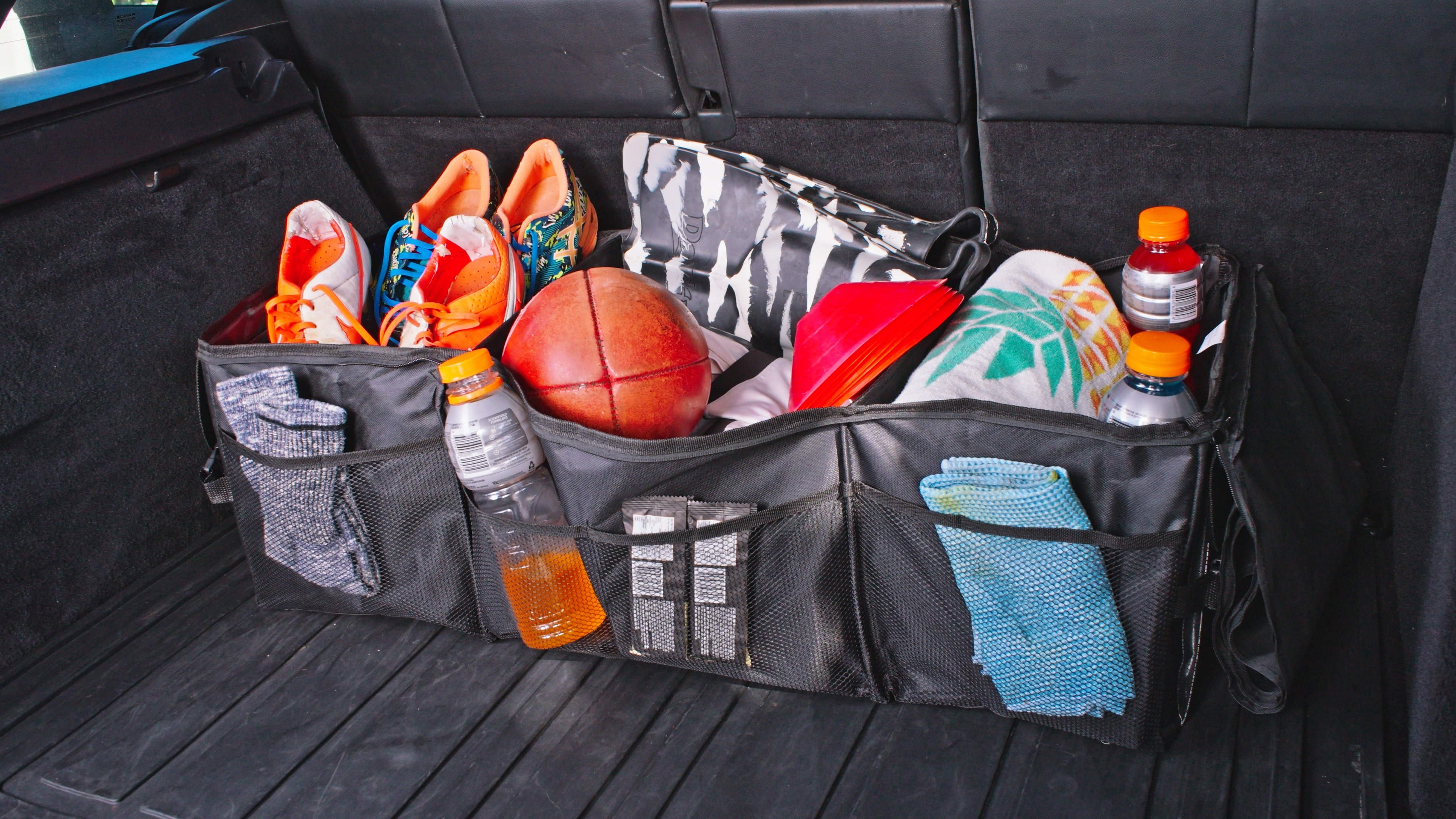 Underneath everybody’s luggage is not the ideal place for those safety essentials to live. A boot organiser will keep them out of the way yet easily accessible. It’s also a great place to poke those little pieces you won’t need until you stop. A frisbee might be fun!