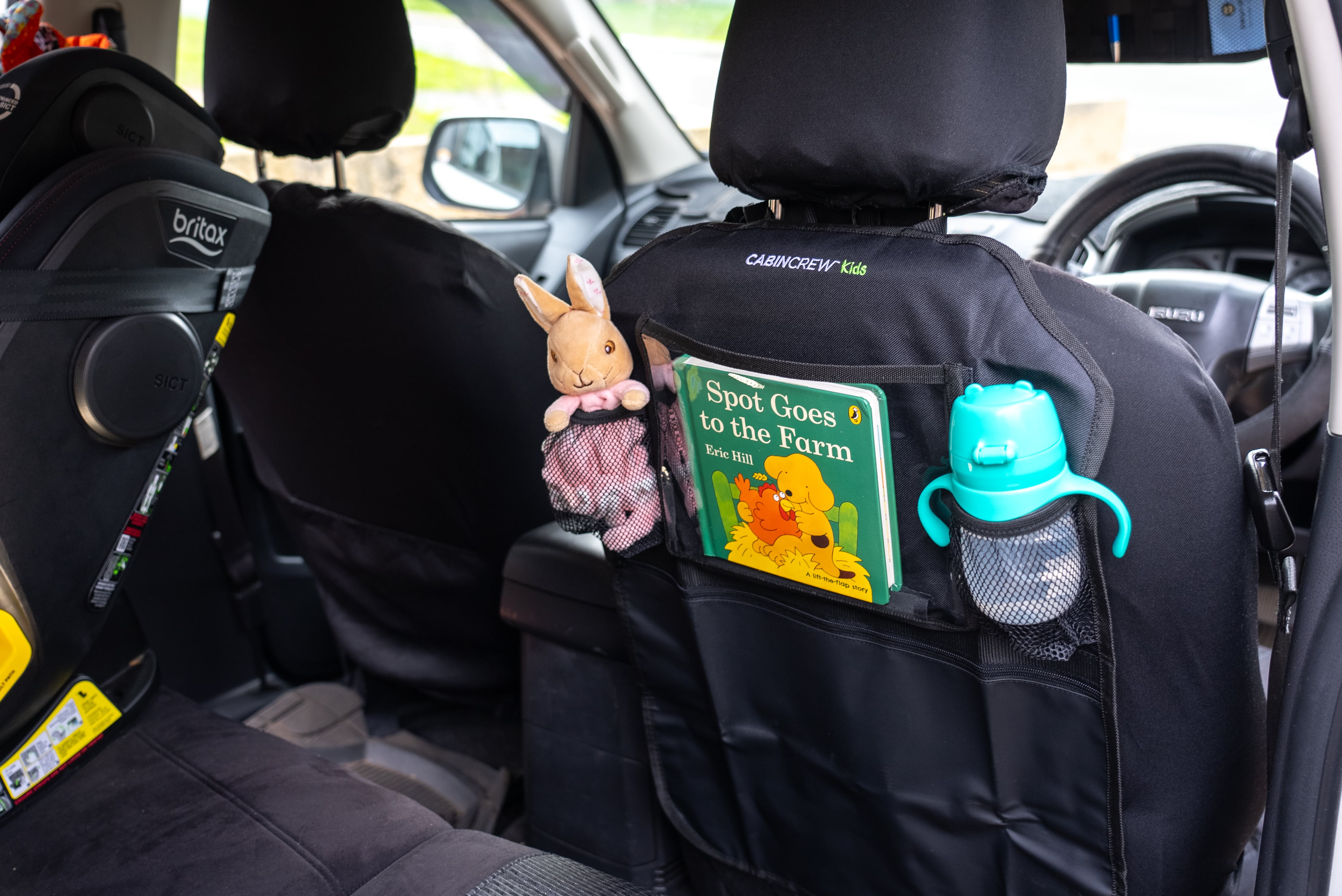 There’s so much you can do with the back of your seats! An organiser for each will give your travel buddies somewhere to store their personal items, or a place to poke countless toys and games for the kids.
