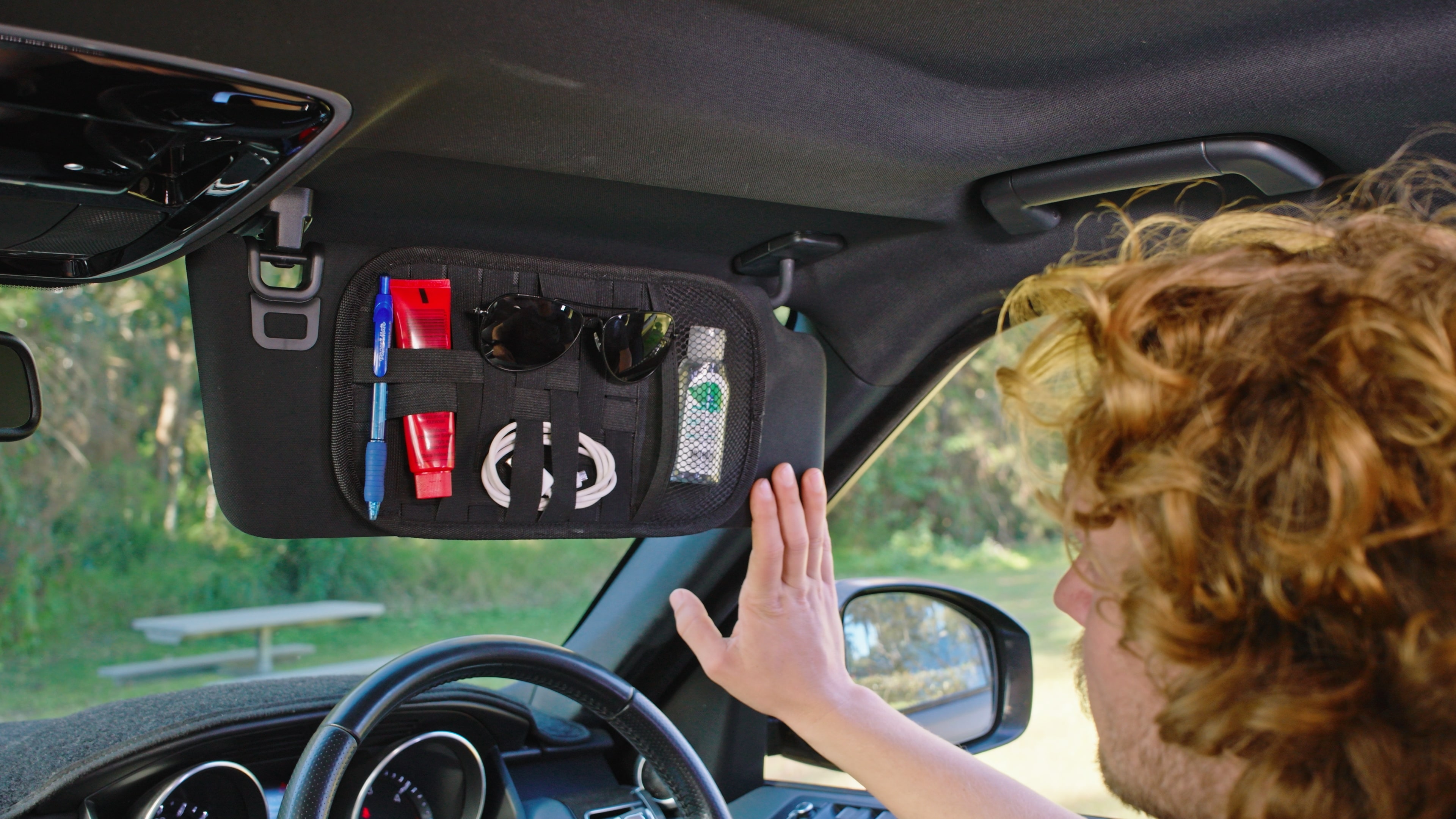 Up the front you can use the sun visors to tuck pens, sunnies and more out of the way.